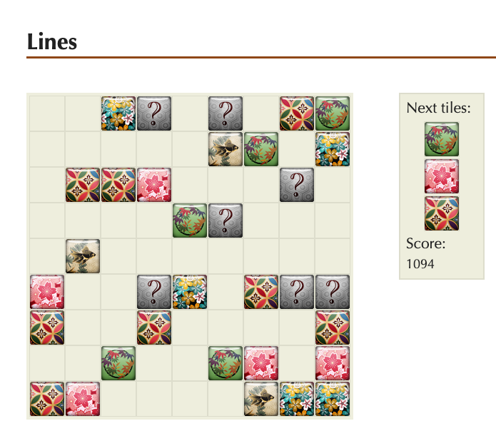 After these three games (Lines, Lines 98 for Windows, Lines 98 for mobile) the trail of this game's lineage goes cold. Actually the the reverse: the trail goes hot - bright, burning hot. There are a bazillion clones of this game now and most of them have the words "Lines 98" in their title, so it's hard to tell when the popularity of this game exploded and if there are any other notable versions.