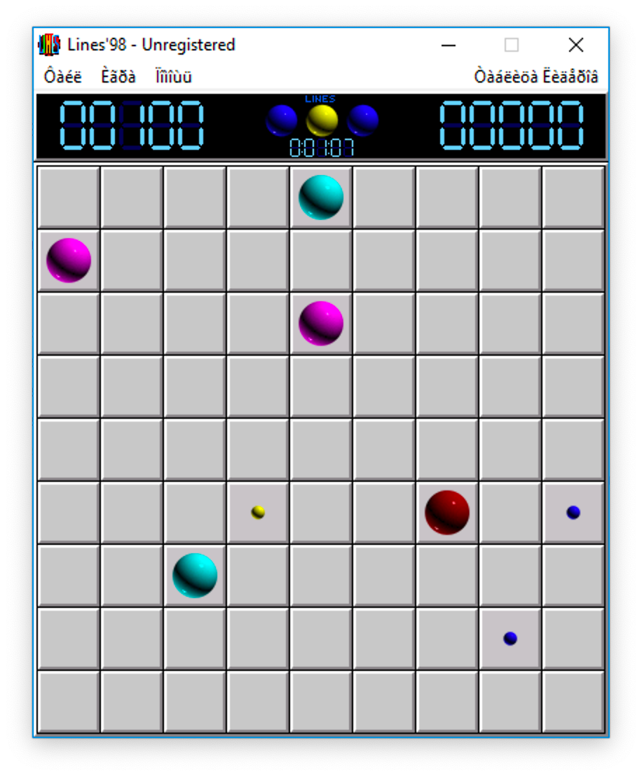 Turns out the web game above is one of many clones based on a 1992 DOS game called Color Lines, designed by Oleg Demin and published by the Russian game company Gamos.